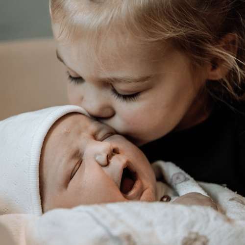 We kwamen rond 11 uur terug op de kamer. De rust en uitputting sloegen bij mama in en zij viel in slaap met kleine Giulia tevreden aan de borst. Papa had opa, oma en kleine zus al op de hoogte gebracht en die voegde zich een klein halfuurtje later bij ons. Wat was dat lief! Die kleine grote zus Vayènna was zó enthousiast en lief voor haar zusje. Een vertederend beeld. Er werd gelachen, gehuild en geknuffeld. Toen de baby weer terug naar mama moest, volgde er een boze tweejarige haha, want de baby was van haar! Zelfs dat was weer aandoenlijk om te zien. Gotta love toddlers!