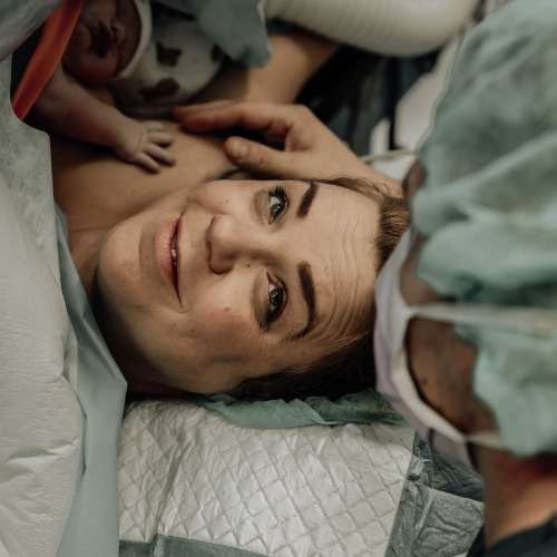 Een gentle sectio is prachtig om mee te maken. Er is alle tijd, rust en ruimte om de geboorte zo ontspannen mogelijk te maken voor ouders en baby. Zo was het ook op die regenachtige ochtend niet anders. Op de hele OK voelde je een ontspannen sfeer en iedereen was relaxed. Langzaam werd de buik geopend en de baby geboren. Het huiltje vulde de ruimte al voordat Giulia helemaal geboren was. Wat was dat fijn! Daar was ze! Veilig en wel, rustig, uit mama haar buik gehaald door de kundige gynaecologen. Papa had de eer, om door het operatiedoek heen, haar navelstreng door te knippen. Daarna volgde een korte check door de kinderarts en werd kleine Giulia al direct bij mama op haar borst gelegd. Hier heeft zij het eerste uur (vanaf haar geboorte tot het moment dat we terug waren op de kraamafdeling) heerlijk gelegen in de speciale buideltop. Hoe fijn is dat! En zó anders dan de vorige keer.